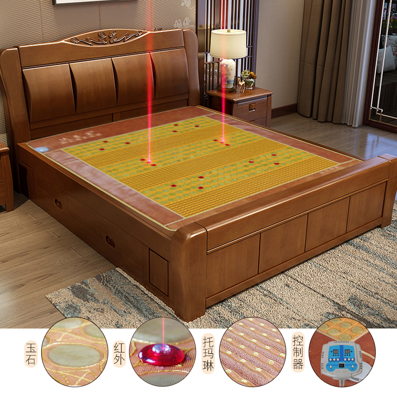 红外灯、沙土粒、托玛琳粒、玉石排列的加热玉石床垫,加热床垫采用碳纤维加热线规格有:1.0*1.9m,1.2*1.9m,1.5*1.9m,1.8*2.0m,厚度为2.5cm,有单温单控和双温双控的加热控制器,温度在20-70度之间调节,可以定温定时。¥ 0.00立即购买